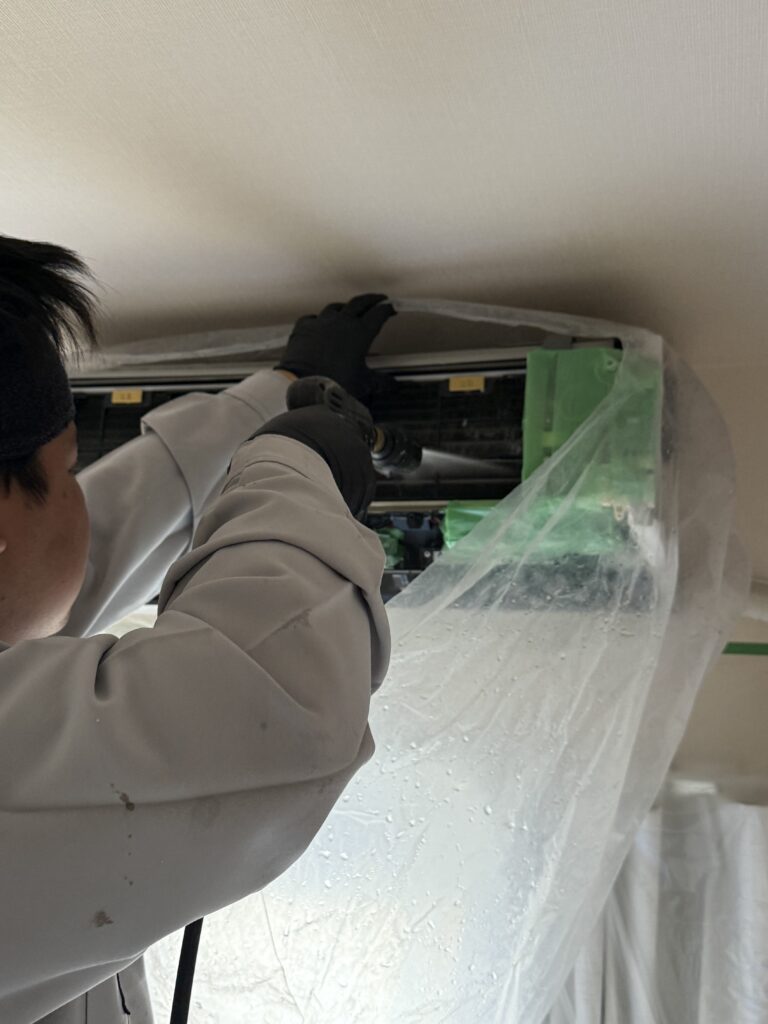 やっと養生をして洗浄開始です!